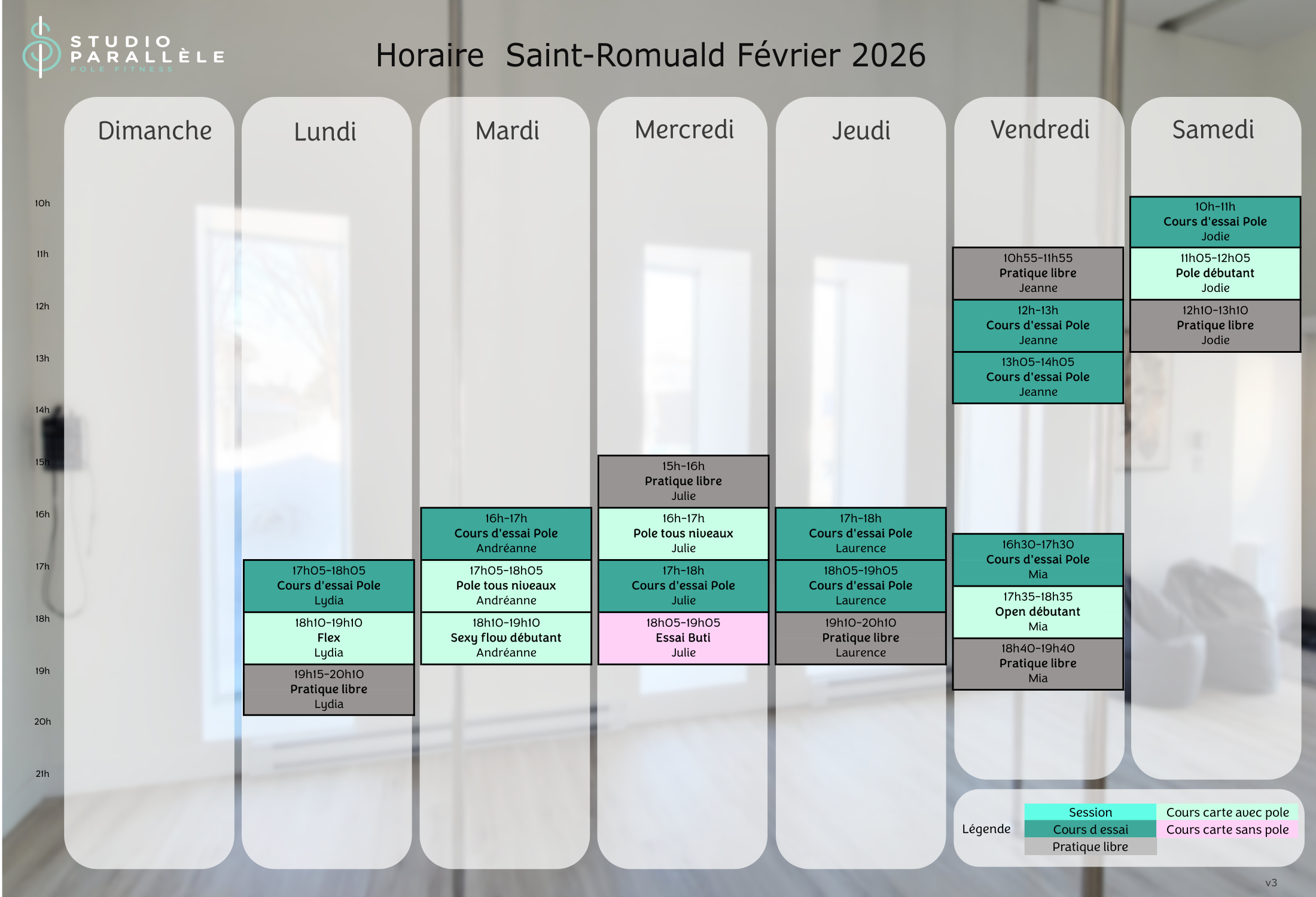 Horaire Février 2026 Nouveau Studio Saint-Romuald